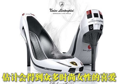 今天我們給您帶來的是蘭博基尼的高跟鞋。這是一雙白色的高跟鞋。從圖片上可以看到這雙白色高跟鞋的部分還些許展現(xiàn)了蘭博基尼蓋拉多車型的模樣。