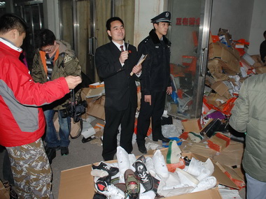 32歲的福建人莊全伙同妻子賴來、妻弟賴建在豐臺區一家鞋城出售假冒注冊商標的“耐克”、“阿迪達斯”牌運動鞋被民警當場查獲,并在三間庫房內查獲大量運動鞋,共計7324雙,經鑒定均為假冒注冊商標的商品,價值共計人民幣15.3804萬元,三名被告人均因銷售假冒注冊商標的商品罪獲刑。為了加大保護知識產權的力度、嚴厲打擊假冒國際品牌,豐臺法院決定對該案贓物進行公開銷毀。