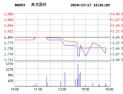 12月17日美克國際股票行情走勢