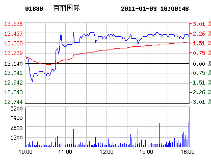 01月03日百麗國際股票行情走勢