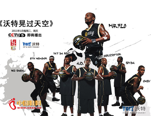 【中國鞋網-鞋業品牌新聞】 從1月4日開始,由沃特集團、中央電視臺體育頻道以及上海晃動體育文化傳播有限公司聯合打造的2011年開年大戲——《沃特晃過天空》在中國最強勢體育電視平臺CCTV5震撼上演。此專題片為中國電視史上第一檔以街頭籃球為主題的電視真人秀節目,旨在打造成為中國街頭籃球愛好者的圣經,堪比美國當年那套讓全世界街球迷們都趨之若鶩、為之瘋狂的And1 Mixtape系列DVD。