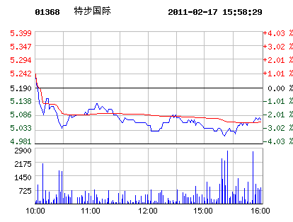 特步國際2月17日股票行情走勢