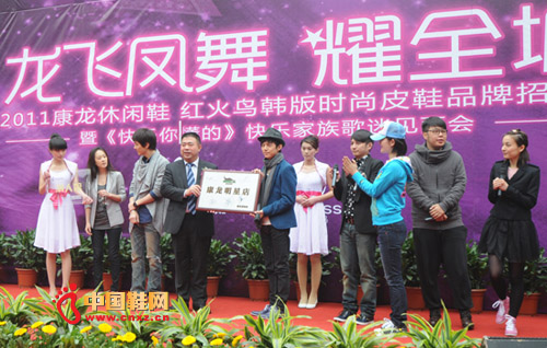 據了解,“快樂家族”何炅、謝娜、李維嘉、杜海濤、吳昕是以康龍品牌時尚顧問的身份為新開業的康龍“快樂家族”明星店剪彩,并將他們在主持界的才能帶到現場,打造“街頭版大本營”。同時,簽約代言紅火鳥品牌的李承炫兄妹也出現在現場,為紅火鳥潮人館開業剪彩,現場人山人海。