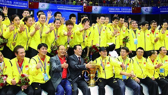 經過7天的激烈角逐,5月29日晚,迎來了中國羽毛球隊與丹麥隊之間的奪冠對決,能容納1萬余人的國信鉆石體育館,觀眾爆滿,吶喊聲、掌聲“山呼海嘯”。最終,中國羽毛球隊以3:0橫掃歐洲勁旅丹麥隊,在現場《我們是冠軍》的雄壯音樂聲中,“金牌之師”中國羽毛球隊再次捧起了蘇迪曼獎杯。這是中國羽毛球隊第二次實現了蘇杯歷史上的“四連冠”。連續九次站在蘇杯決賽賽場上,中國隊也已經完成了蘇杯歷史上“八冠王”的偉業,書寫了歷史最佳,續寫了中國羽壇新篇章。獲悉中國羽毛球隊再次奪得蘇迪曼杯冠軍,中共中央政治局委員、全國政協副主席王剛當晚向中國國家羽毛球隊致電祝賀。
