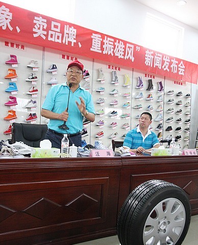 雙星集團總裁汪海(左)出席發布會并致辭,雙星集團副總經理生錫順(右)主持