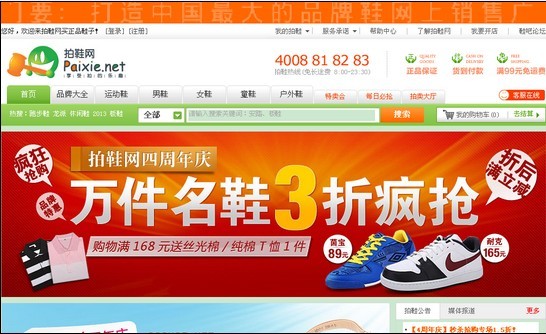 拍鞋網是國內最大的正品鞋銷售商城,是拍鞋網(福建)電子商務有限公司旗下B2C平臺,總部坐落于中國品牌之都--石獅,于2007年正式上線發布。拍鞋網作為新生代的鞋類B2C網站,立足石獅及晉江的鞋業產業優勢,一經推出,就迅速聚集了超強的人氣,顯現出強勁的發展勢頭。自正式運營以來,拍鞋網先后獲得“2008年中國行業電子商務網站100強” “泉州高校最佳合作電子商務網站” “福建省十佳鞋類電子商務網站”“中國鞋類最佳電子商務網站大獎”及“2010年最具價值行業電子商務網站”等一系列的榮譽。