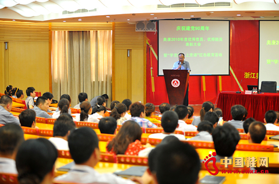 【中國鞋網-品牌動態】6月23日下午,奧康2010度優秀黨員、優秀團員表彰大會在奧康千石總部召開,奧康黨委書記黃淵翔主持會議并發表重要講話,溫州市委黨校胡潤澤老師做了主題為《中國共產黨90周年革命和建設的歷史經驗》演講。