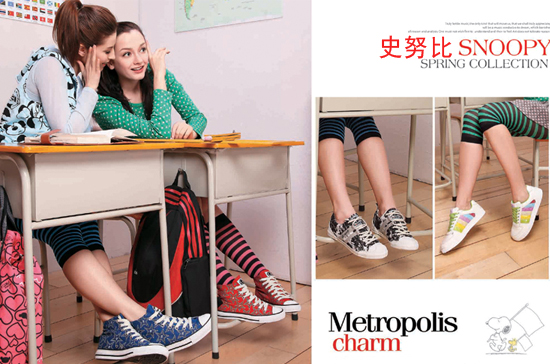 如今,這只溫暖的小狗又與中國的鞋文化碰撞出了新的火花,成為國內休閑、運動女鞋品牌的代表性符號,為之注入了一股新的文化力量。2006年,廣州龐博鞋業有限公司成為了美國聯合菲徹辛迪加公司(UNITED FEATURE SYN DICATE,INC)花生漫畫/史努比(PEANUTS/SNOOPY)的文字及圖形之商標在中國內地用于女士時尚鞋,休閑鞋,運動鞋的唯一授權廠商,承擔著SNOOPY(史努比)品牌女鞋的推廣及研發工作。