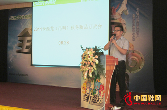 【中國鞋網-品牌動態】6月28日上午10時,卡西龍"全力領先"2011昆明秋冬新品訂貨會在昆明尼斯酒店拉開帷幕。來自云南省各地的經銷商參與了這次訂貨會。卡西龍總部營銷中心營銷總監黃繩榕,昆明總代理張能龍出席本次會議。