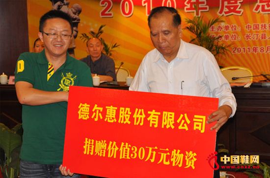【中國鞋網(wǎng)-品牌動(dòng)態(tài)】8月9日,中國扶貧基金會(huì)“母嬰平安120行動(dòng)項(xiàng)目”2010年度總結(jié)交流會(huì)在福建省長汀縣舉行。會(huì)議上,股份有限公司再次向中國扶貧基金會(huì)捐贈(zèng)價(jià)值30萬元的物資。中國扶貧基金會(huì)副會(huì)長陳開枝代表基金會(huì)接受了捐贈(zèng),并向的愛心善舉表達(dá)了謝意。至此,于2010年重慶水災(zāi)期間承諾的100萬元物資捐贈(zèng)已全部履行完畢。