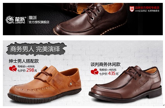 【中國鞋網-品牌動態】全國最大的在線正品鞋銷售商城拍鞋網力推的品牌商務是中鞋網的自主品牌。2008年,品牌強勢登陸國內商務休閑皮鞋市場。定位為商務休閑鞋業品牌的龍派,以其嚴謹的線條、高檔的材質,體現高雅品味的同時又不失個性與休閑,贏得了眾多商務人士的青睞。