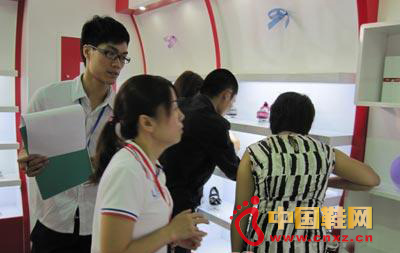 早晨時尚鞋院2012年春季新品發布會工作人員為顧客詳細講解