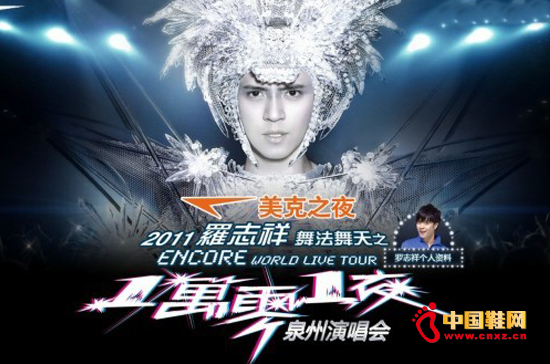 【中國鞋網(wǎng)-品牌動(dòng)態(tài)】羅志祥2011“舞法舞天”之“一萬零一夜”世界巡回演唱會(huì)泉州站即將于10月8號(hào)在泉州海峽體育中心體育館盛大開唱,作為中國十大之一的企業(yè),福建休閑體育用品有限公司,為表示對(duì)其形象代言人羅志祥的鼎力支持,將對(duì)演唱會(huì)進(jìn)行全程冠名贊助。