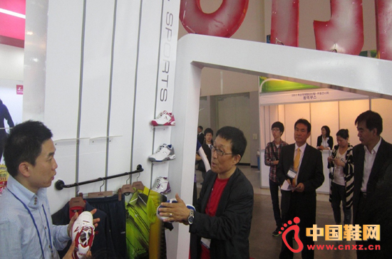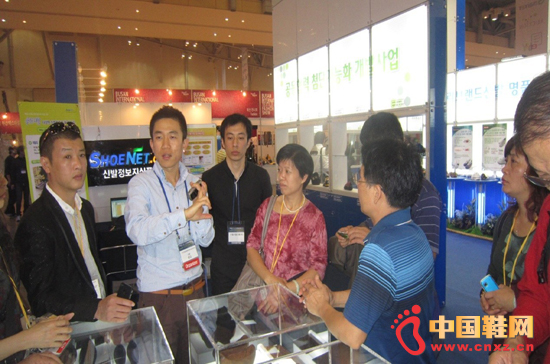 組委會(huì)負(fù)責(zé)人向客人介紹韓國(guó)鞋展總體情況