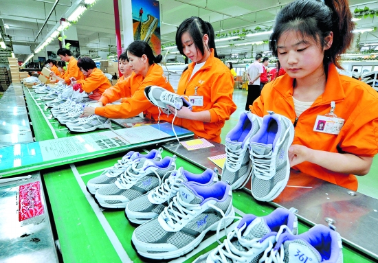 出口鞋類呈三個方面特點:一是品種較為齊全,形成從嬰童鞋到,從、拖鞋到的出口品種;二是歐美市場已成為泉州鞋類出口的主陣地;三是產品附加值不斷提高,1—9月出口均價達5.61美元,比增19.4%,其中最高單價達39美元。 圖為我市一的生產場景。