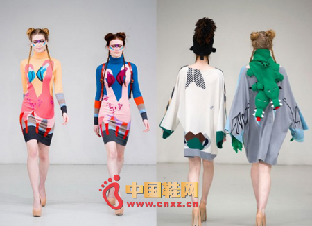 【-設計師風采】YD:我喜歡用“擬人”這個詞來形容我的設計。更確切的說是角色play。2012 AW 靈感來源于圣經里的“諾亞方舟”和意大利最近發生的沉船事件,我邀請了四位表演藝術家演繹了一場從遇難到幸存的故事,用黑色幽默的手段展示現代社會人與人之間的關系。