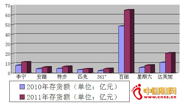 據(jù)了解,李寧、、特步、匹克和中國動向這5家公司的平均庫存天數(shù)為41天。其中,李寧為46天,安踏為25天,特步為44天,匹克為33天,中國動向則為54天,比2010年有了較大幅度的增加。(中國鞋網(wǎng)-最權(quán)威最專業(yè)的鞋業(yè)資訊中心)