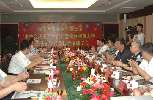 【-鞋材資訊】2012年6月18日,“水性合成革產(chǎn)品推介暨陜西科技大學人造革合成革工程技術(shù)研究中心、河南省皮革行業(yè)協(xié)會常務(wù)理事單位”授牌儀式在河南寶隆實業(yè)有限公司隆重舉行。同時,寶隆實業(yè)的水性合成革生產(chǎn)線也于當日順利投產(chǎn),目前日產(chǎn)可達3萬米。