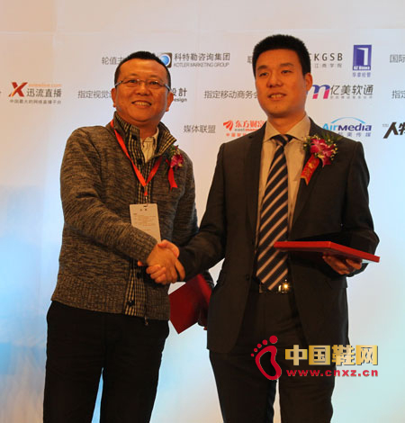 CCTV—2制片人姜詩(shī)明(左)為都市麗人鄭耀南頒獎(jiǎng)