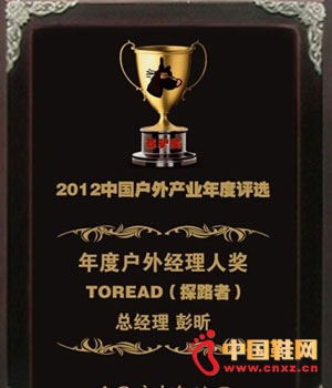 【中國鞋網-品牌動態】2013年1月18日,由戶外資料網()主辦的“尊驢獎”--2012年中國戶外產業年度評選活動公布評選結果。北京(專賣店)探路者(專賣店)戶外用品股份有限公司榮獲品牌及人物雙料大獎,其中探路者品牌榮獲“年度綜合類實力品牌獎”,總裁彭昕先生榮獲“年度戶外經理人”獎。