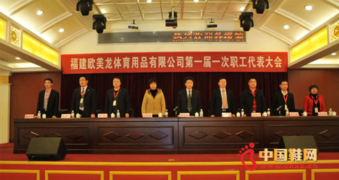 【中國鞋網-品牌動態】為塑造職工的主人翁意識,調動工作積極性,辦好社會主義和諧企業,2013年1月18日,福建歐美龍體育用品有限公司第一屆一次職工代表大會在歐美龍工業園順利召開。永春縣委常委、縣總工會主席張金志、永春縣總工會黨組書記、常務副主席呂秋燕等各位領導與歐美龍集團董事長陳忠實出席會議。