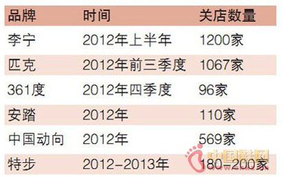 除特步之外,李寧在去年上半年的關(guān)店數(shù)量近千家,門店數(shù)減少至7303家,而關(guān)店數(shù)量在不久后公布的2012年報(bào)中還將繼續(xù)上升。