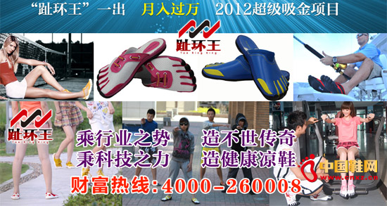 【中國鞋網-品牌動態】21世紀是一個步伐矯健的時代,對于生活()的世界人而言,腳穿一雙質地,外觀都頂呱呱的鞋,就顯的尤其的重要,然而縱觀全球鞋業的市場,真有著一款后起之秀般的鞋子正攻向中國的市場,那便是趾環王鞋中鞋。