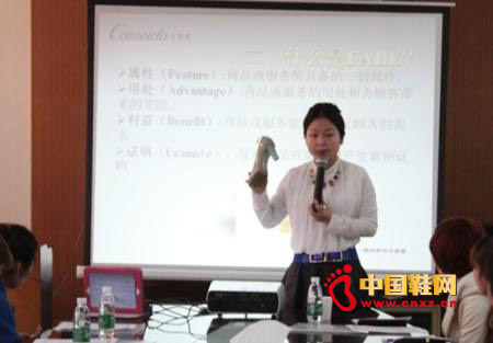 此次培訓(xùn)通過(guò)“流行趨勢(shì).服飾搭配”、“春夏產(chǎn)品賣點(diǎn).FABE法則”、“春夏產(chǎn)品陳列”、“國(guó)內(nèi)女鞋行業(yè)分析”、“貨品主動(dòng)性管理”等課程進(jìn)行開(kāi)展。