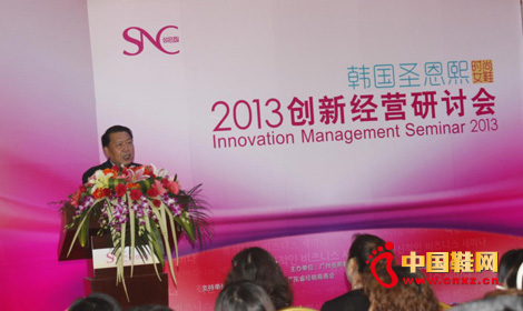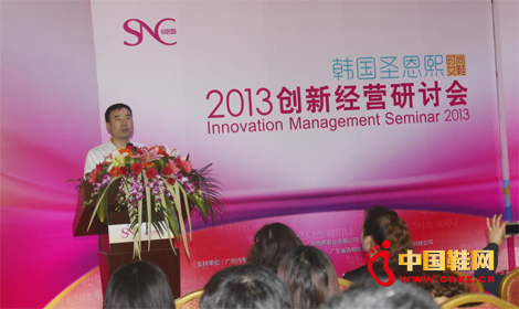研討會上,首先廣州恩熙鞋業有限公司董事長朱柏翰先生致辭,介紹了圣恩熙女鞋的戰略規劃,及品牌升級部署。也強調了圣恩熙女鞋品牌將一直在不斷創新,迎合現代女性的消費需求,堅持做“最具女人味韓國時尚女鞋”。其次,廣東省經銷商商會會長蔡先生站在行業高度,講述了2013年女鞋連鎖加盟發展必然趨勢,消費者對具有創新精神的品牌和企業更加關注。在今后的發展中,企業更應該注重創新,不斷迎接新挑戰,創新經營模式。最后,廣州鞋業商會陳小姐語重心長地指出:中國是全球最大的鞋業生產基地,女鞋消費市場需求非常大,女鞋品牌的平均消費需求將達男鞋消費比例的5倍,現代女性對女鞋的需求空間遠遠在擴大,并且像類似于“時尚女鞋創新經營研討會”這樣的行業論壇,要常態化舉辦,為女鞋行業增創快速發展新優勢,推動鞋業品牌健康發展。