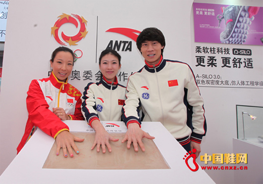 安踏代言人奧運明星伉儷龐清佟健、網(wǎng)球名將鄭潔在安踏展區(qū)留下手印