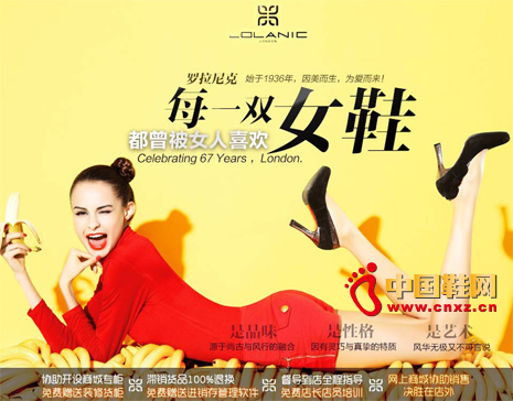 【中國鞋網-品牌動態】投資創業什么項目好?女鞋商機。隨著中國生活質量的提高,中國女性對日常生活飾品的質量越來越重視,中國中高端女鞋背后蘊藏著巨大的市場。有著多年成功運營經驗的羅拉尼克時尚女鞋落戶廣州,不僅滿足了中國內地女性對品牌女鞋的需求,還為每一位加盟商提供了致富的機會。加盟羅拉尼克時尚女鞋,攜手羅拉尼克女鞋走進每一位中國女性的家中。