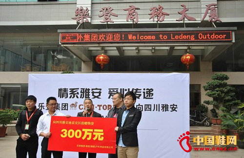 了解到災區面臨帳篷和保暖衣物緊缺狀況,樂登戶外集團董事長助理陳嘉泰表示,“災區缺的睡袋帳篷,我們捐!支援災區,是企業應履行的社會責任,希望可以為震區提供力所能及的幫助,也希望雅安人民早日平安,重新建設美麗家園。”