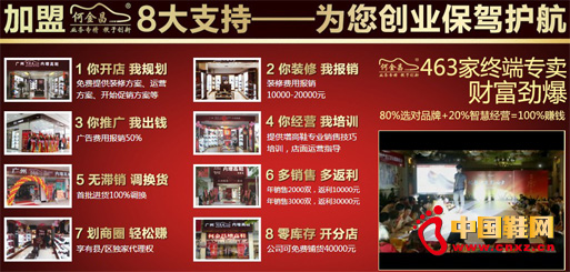 內增高鞋有著十分廣闊的市場空間,對于何金昌鞋業的加盟商們來說更是一個難得的商機。相信在何金昌鞋業總部的大力幫助之下,即使是出入商界沒有太過人生閱歷的年輕創業者也可以成就一番屬于自己的事業,事實現自己的財富夢想。(轉載請注明來源中國鞋網 原創,本網保留追究盜用者版權責任的權利。)