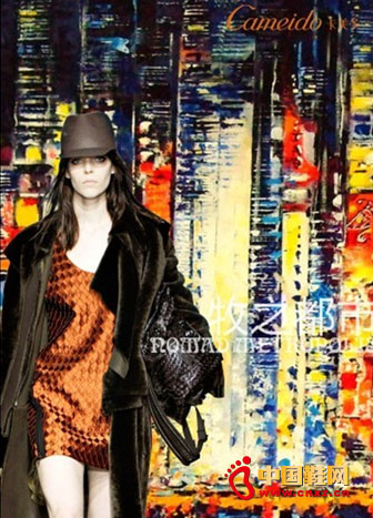 耀眼的色彩,混搭風再度來襲,CAMEIDO卡美多2012秋季“牧之都市”系列,用皮草和動物紋喚醒都市女性沉睡已久的“游牧”情懷,并更加大膽的將皮草和動物紋運用至鞋跟和底臺,木紋底和金屬鑲鉆融入古著的優(yōu)雅經典,演繹國際大熱的bling bling風,并以極富裝飾性的巴洛克風格,融合現(xiàn)代流行剪裁與時尚元素,彰顯別具一格的奢侈感,塑造媲美建筑設計風格的線條,創(chuàng)造出亦古亦今的時尚風格,漫步屬于都市女性內心的自由之境。